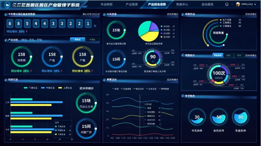 基于HTML5的园区大屏系统,动效丰富,引入入胜。